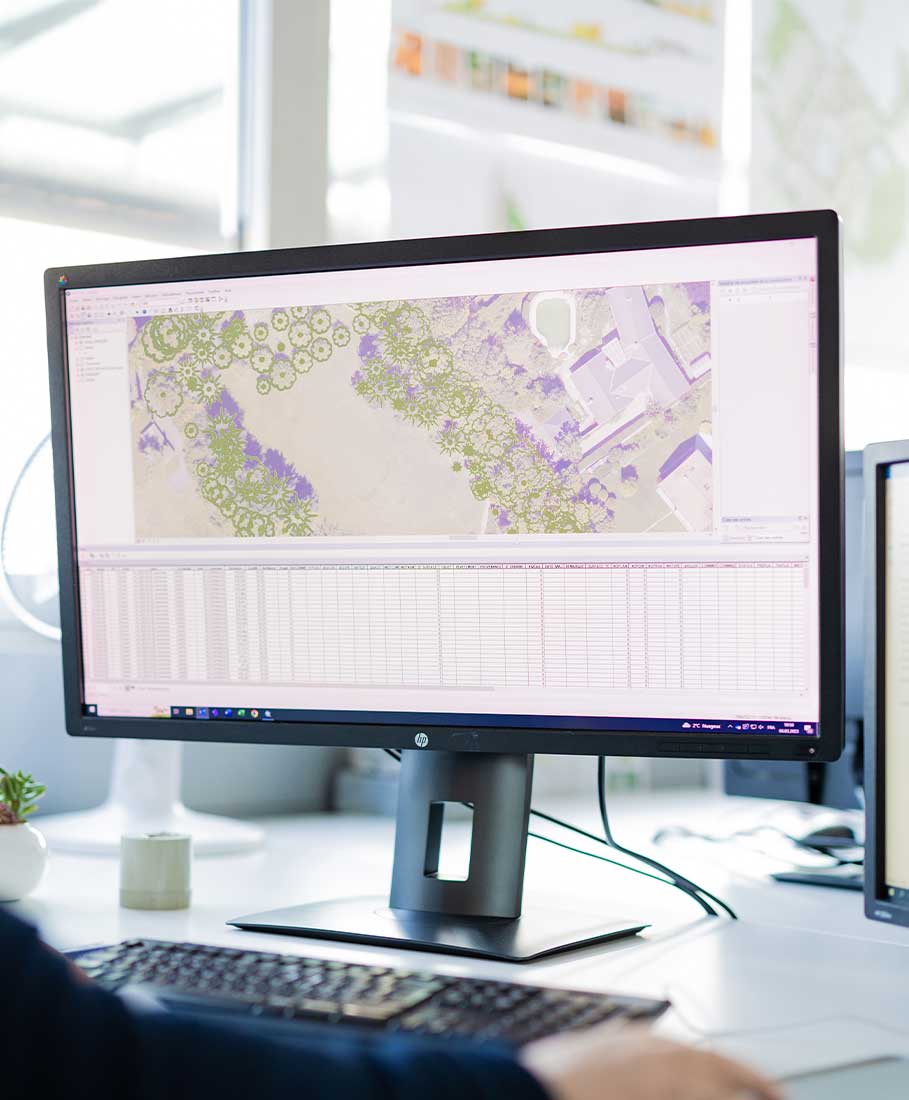 Nous utilisons les dernières technologies telles que le BIM, le Lidar, la réalité virtuelle pour permettre aux villes de modéliser le plan canopée 2030 et de mesurer les impacts des îlots de chaleur (ICU), la qualité de l'air, et les conditions de sol ...